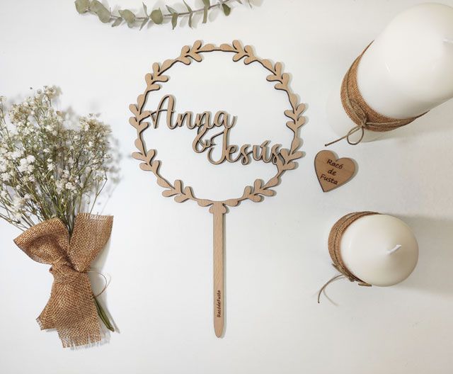 Cake Topper de fusta per a personalitzar el vostre pastís, el dia de les vostres noces.