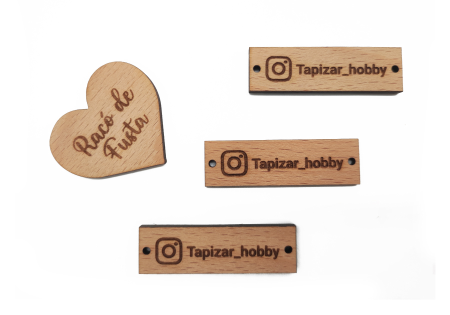Afegeix un detall personal elaborat en fusta per a identificar o personalitzar els teus productes: articles de punt, ganxet, bosses, sabons, costura, roba…