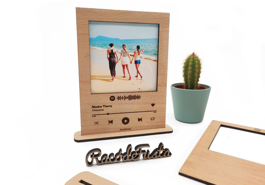 Marc de fusta o portafotos personalitzat amb la vostra cançó preferida.