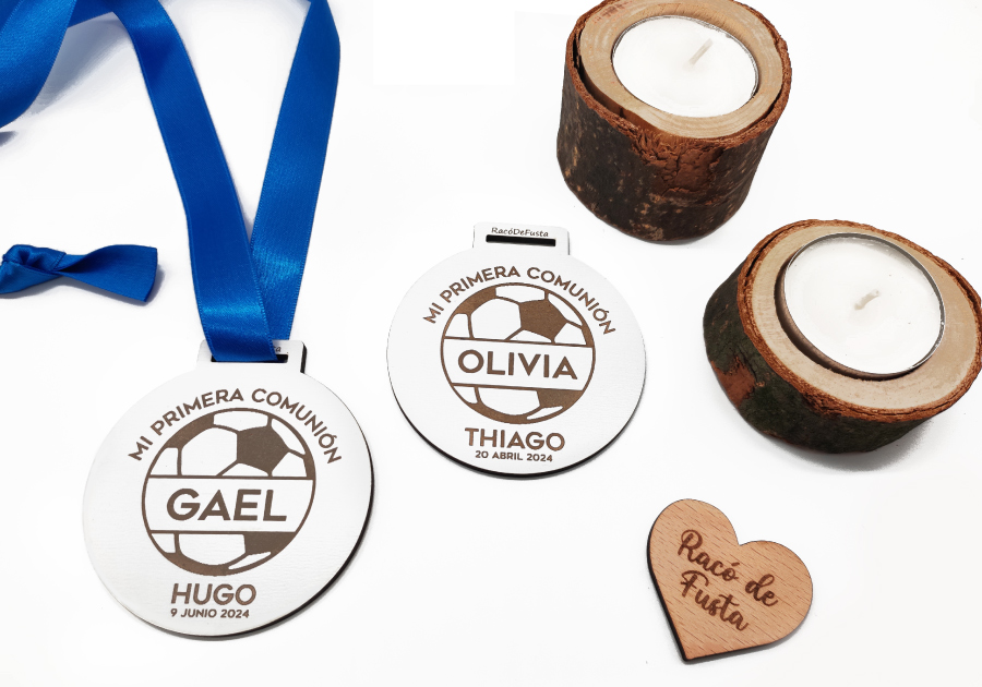 Cada producte comporta personalització del disseny, preparació de la màquina, selecció de materials, manipulació, tall i gravat, polit del producte i posterior embalatge.