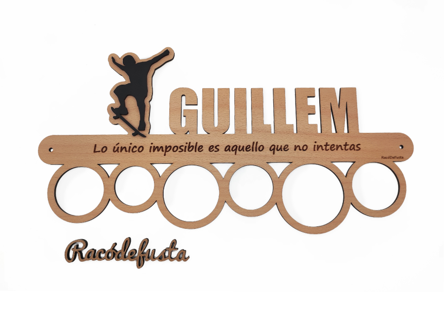 (0) Interval de preus: 24,95€ a 29,95€ IVA incl.Porta medalles Fusta Aros Skate Relleu.
