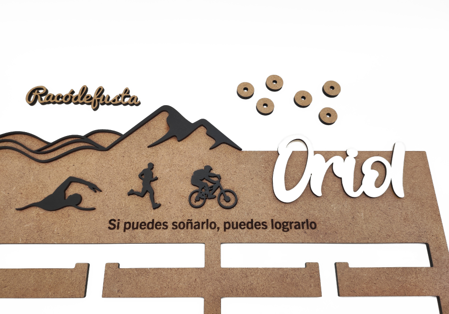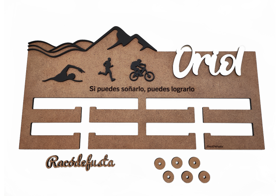 (0) Interval de preus: 28,95€ a 33,95€ IVA incl.Porta Medalles Triatló Fusta Relleu.