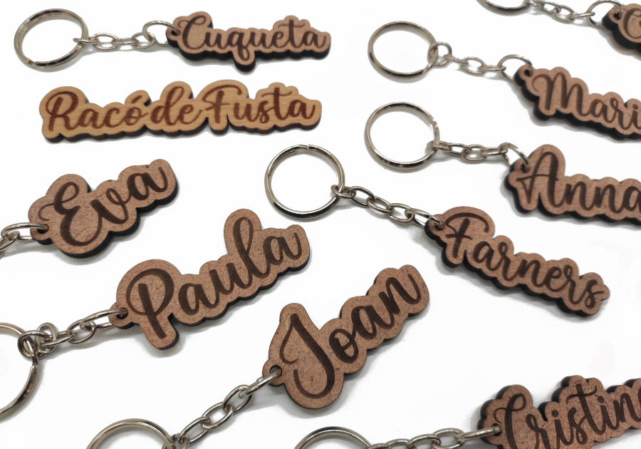 Cada producte comporta personalització del disseny, preparació de la màquina, selecció de materials, manipulació, tall i gravat, polit del producte i posterior embalatge.