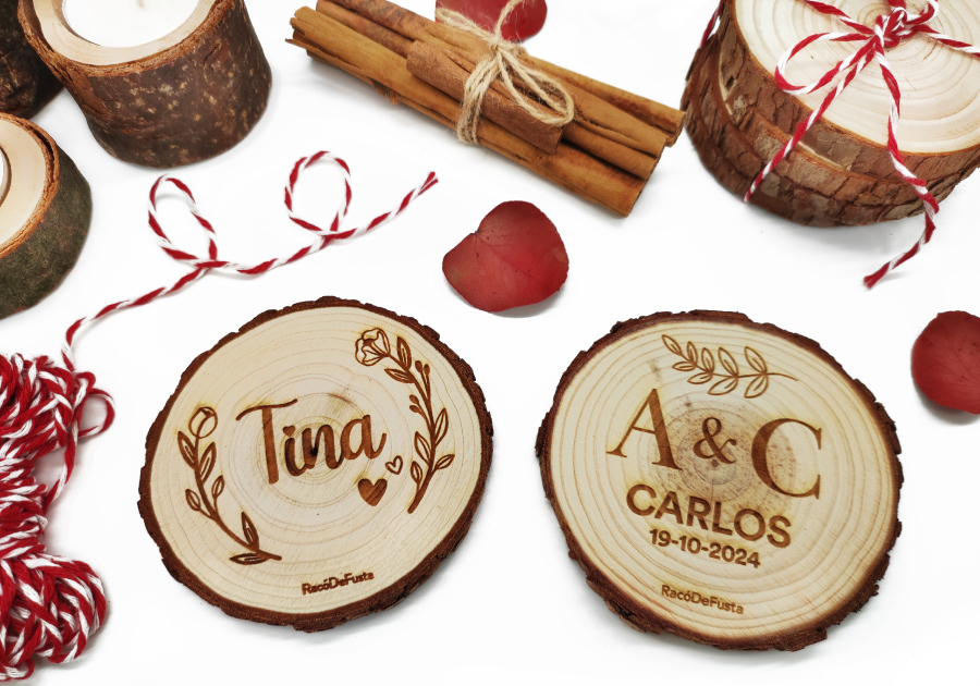 Cada producte comporta personalització del disseny, preparació de la màquina, selecció de materials, manipulació, tall i gravat, polit del producte i posterior embalatge.