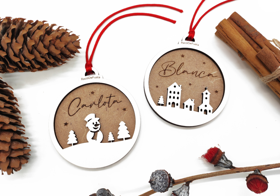 (0)3,95€ IVA incl.Bola Navidad Madera Casitas-Muñeco de Nieve.