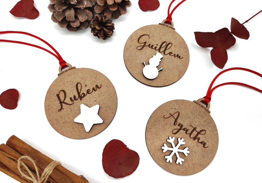 Elaboradas en madera Dm natural y Dm color blanco con el nombre grabado a láser.