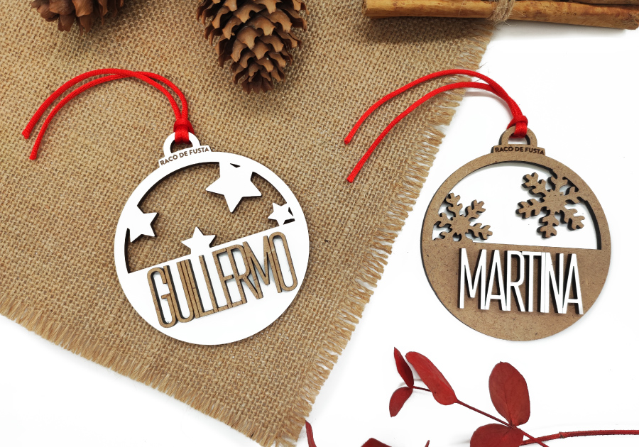 Elaboradas en madera Dm natural y Dm color blanco con el nombre cortado en relieve.