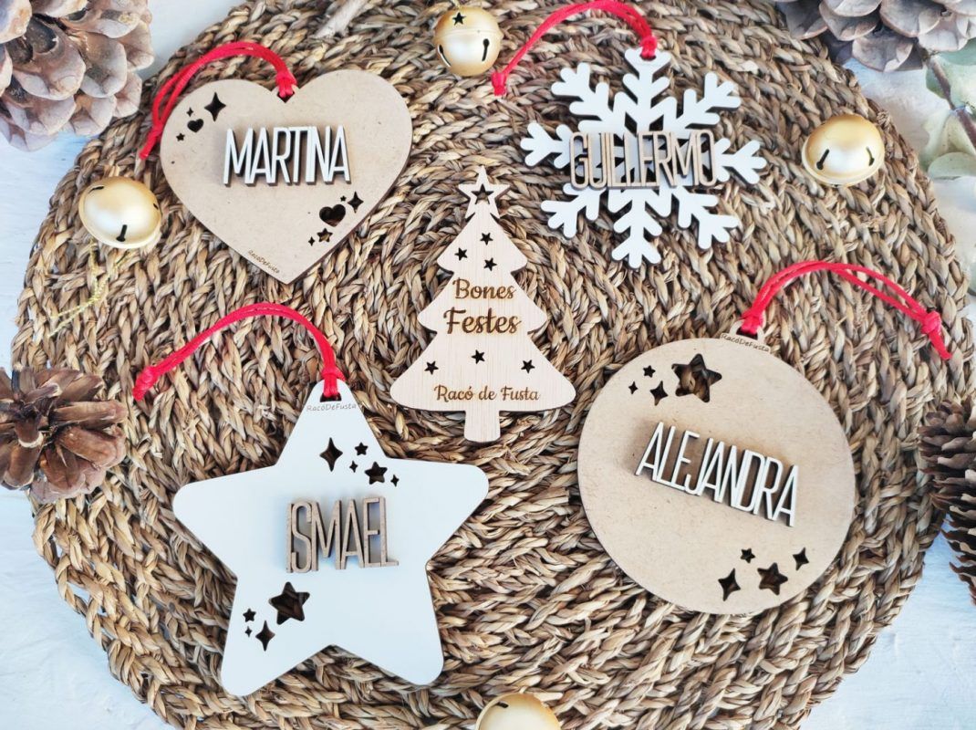 Nuestras Bolas Navidad Madera Nombre Relieve son perfectas para identificar los regalos de estas fiestas o como marcasitios de mesa.