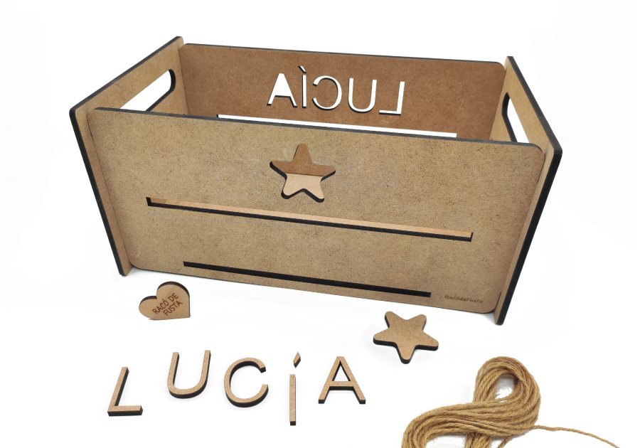 Si lo deseas para bodas, le troquelamos las iniciales de los novios y sustituimos la estrella por un corazón.
