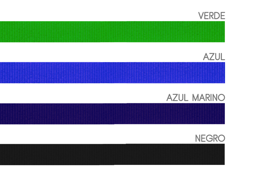 La cinta está disponible en colores: blanco, amarillo, naranja, rojo, verde, azul, azul marino y negro.